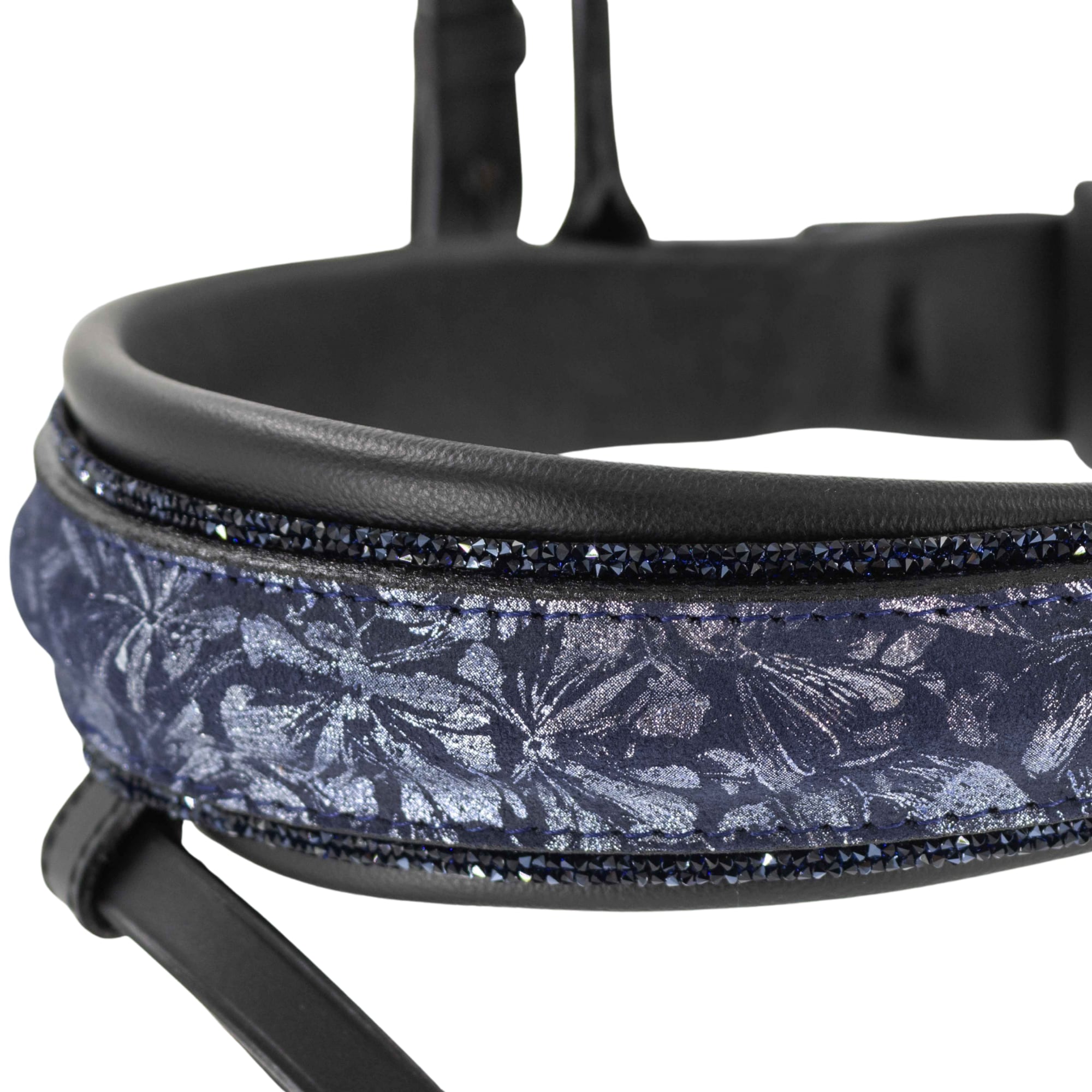 Noseband: Feel Good 5 cm with Blue Metallic Flower print and Fineline piping in Midnight Blue