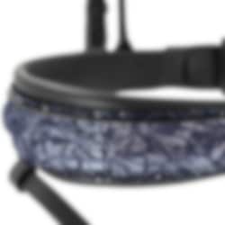 The noseband on this bridle is uniquely decorated with the beautiful Blue Metallic Flower print and finished with elegant Fineline piping in Midnight Blue.