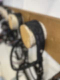 Both the neckpiece and the noseband have the decorative Magarete leather on the outside and the noseband also has fineline piping in black sparkling Swarovski crush.
