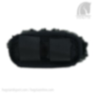 The chin guard is made of genuine sheepskin with a cotton upper and 2 velcro buckles.