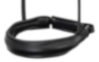 This ergonomically designed and softly padded double bridle noseband combines function with elegance in every little detail. The curved shape of the noseband over the cheeks reduces the risk of pinching between bit and noseband, providing greater comfort for the horse. We have this noseband in black or brown rolled leather with stainless steel buckles, size II. The noseband is 4.5 cm wide. The ergonomic design noseband for use on classic double bridles is also available in other sizes with a choice of stainless steel or brass buckles.