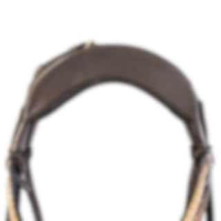Finesse Bridle Himalaya is an anatomical round sewn bridle with the unique crown piece that characterizes Finesse Bridle. The crown piece prevents pressure- and muscle injuries on the horse's neck muscles. The bridle is provided with a delicate clincher brass browband and a quite narrow noseband with brown lining.