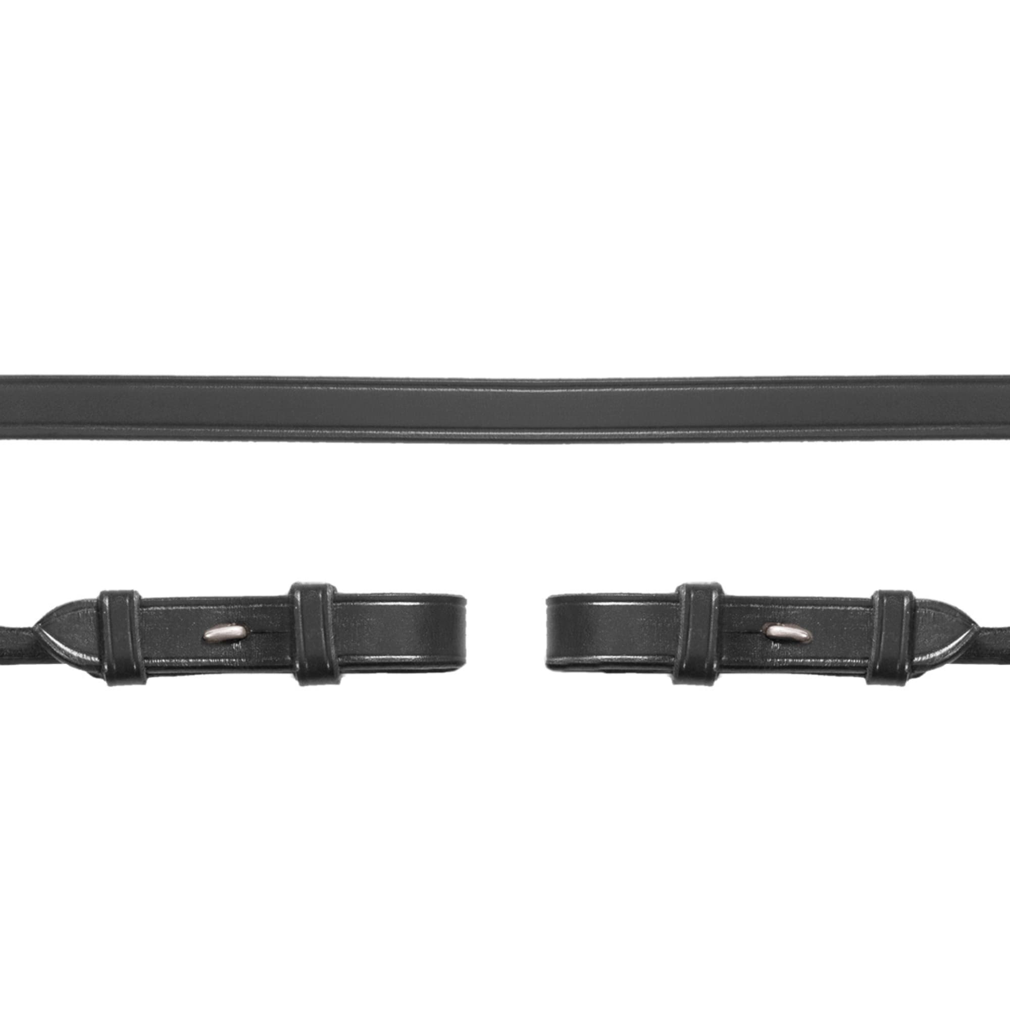Plain round sewn leather reins - Black