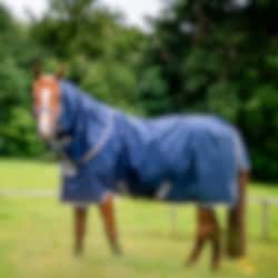 Navy Blue Amigo® 900D Ripstop Turnout Rug 0g – Lightweight, unlined rain rug with detachable hood from Horseware. Ideal for wet, mild weather.