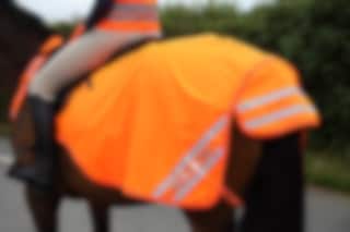 The exercise sheet is available in orange with reflective strips on each side of the horse’s rear.