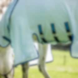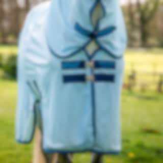 The Amigo® Bug Buster Fly Sheet is designed to deliver maximum coverage, with extended side panels to protect the legs, a detachable neck cover, a large tail flap, and a belly flap secured with three surcingles. The silky lining over the neck and shoulders reduces the risk of rubbing and enhances comfort.
