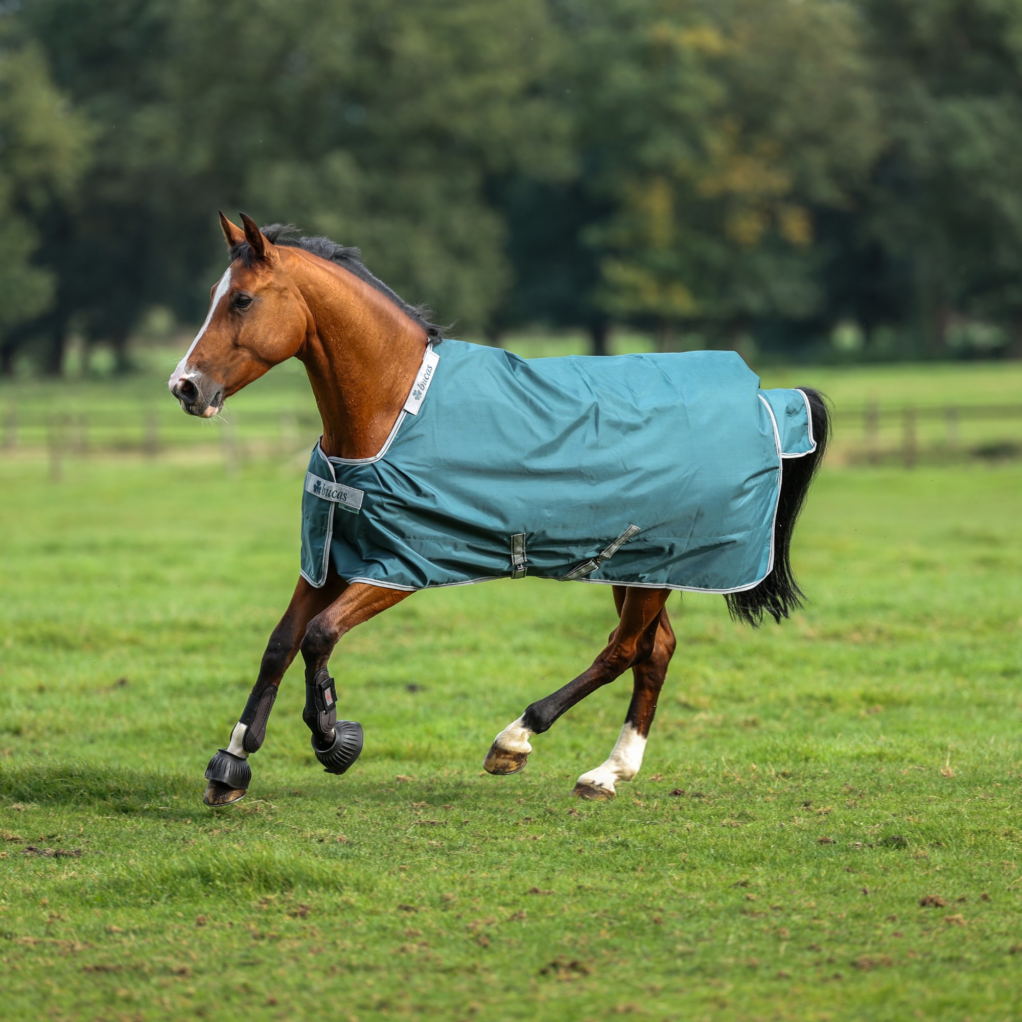 The Atlantic Turnout 50g comes with attachments for a neck cover and is compatible with Bucas liners, quilts, and coolers, making it easy to add extra insulation on colder days. With waterproof (>5000 mm) and breathable (>3000 g/m²/24h) material, this rug keeps your horse dry and comfortable in all weather conditions.