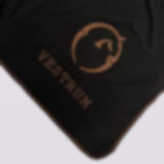 The fleece rug is black with refined brown details, including the Vestrum logo and text on the left side, giving it an exclusive and sophisticated appearance.