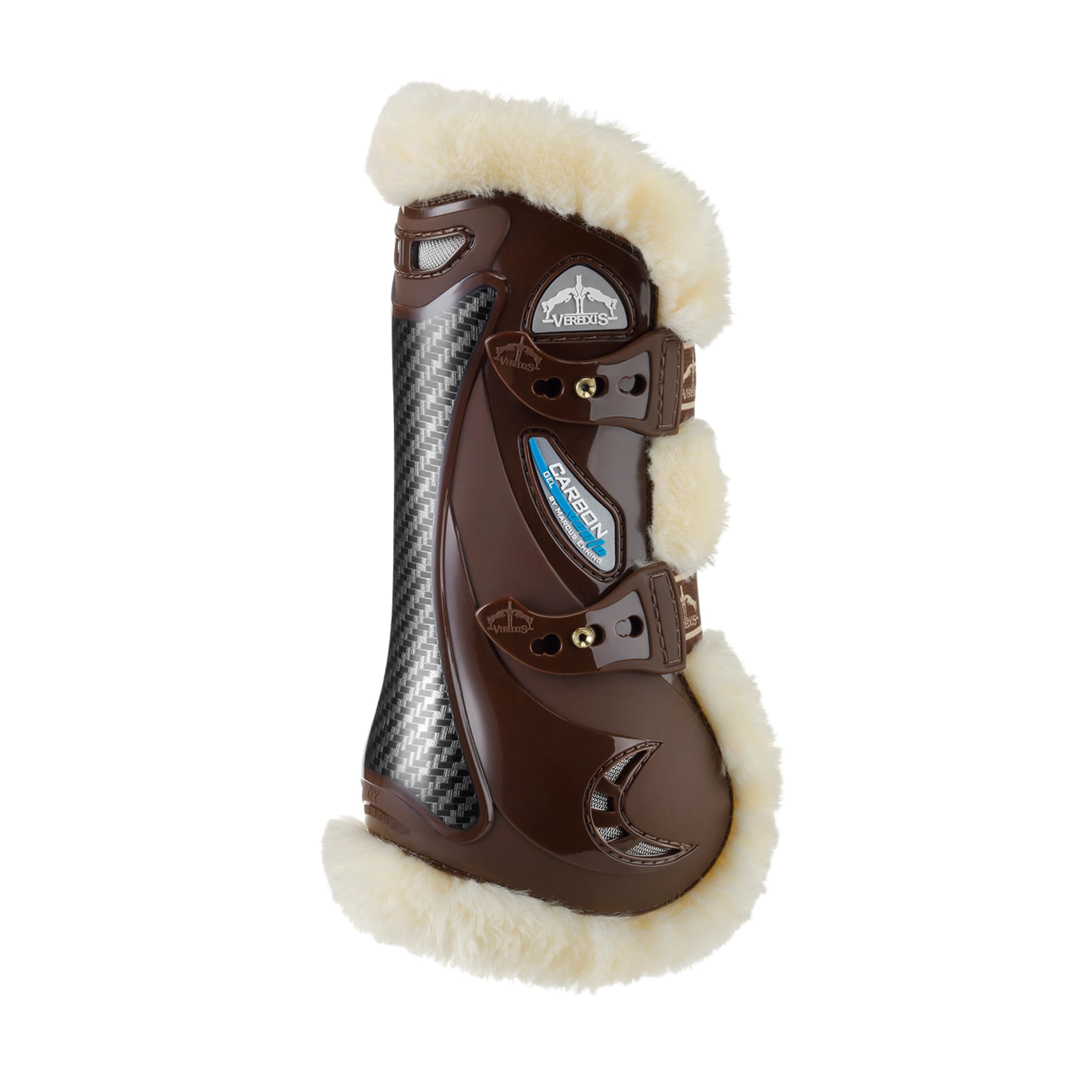 High-ventilated brown front tendon boots with carbon fibre and Nitrexgel, lined with synthetic Techno Sheepskin for added comfort and reduced risk of rubbing.