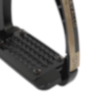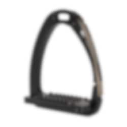 The stirrup is crafted from an advanced combination of anodized aluminum, stainless steel, and flexible polymers. The sturdy aluminum arch ensures stability, while the moving polyamide arm provides flexibility and less rigidity compared to traditional stirrups.