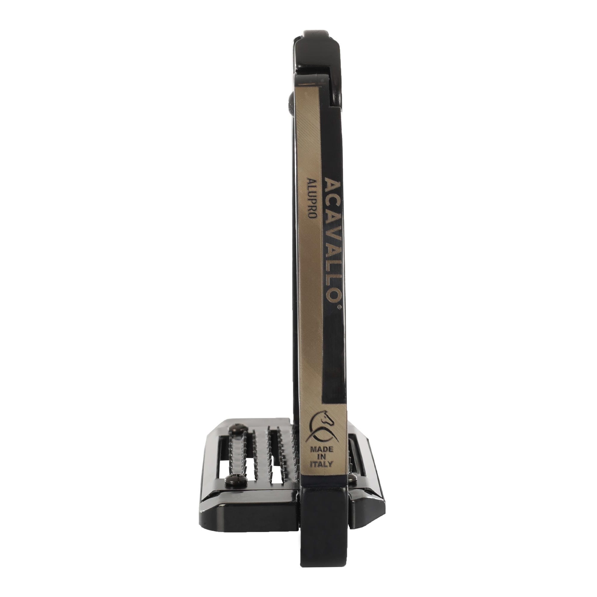 The Acavallo Arena Safety Stirrup is an innovative and highly secure stirrup, designed to provide riders with both safety and comfort. Thanks to its patented side opening at the lower end, the foot is quickly released in case of a fall, reducing the risk of getting caught in the stirrup.