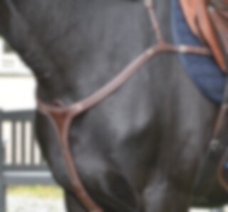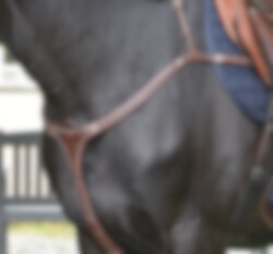 This breastplate has very beautiful details in the form of white stitching, brass buckles and a luxurious E-logo in brass on the left side.