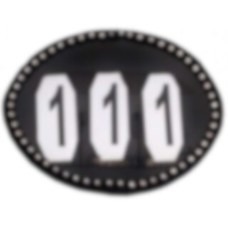 Shine a little extra on the competition with this black start number plate with bling-bling in clearstones. This competition number tag is 12 cm wide and 10 cm high, has three numbers and both velcro and a safety pin on the back.