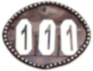 Shine a little extra on the competition with this black competition number plate with bling-bling in clear stones. This competition number badge is 12 cm wide and 10 cm high, has three numbers and both velcro and a safety pin on the back.