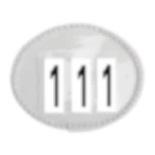 Shine a little extra on the competition with this white start number plate with bling-bling in clearstones. This competition number tag is 12 cm wide and 10 cm high, has three numbers and both velcro and a safety pin on the back.