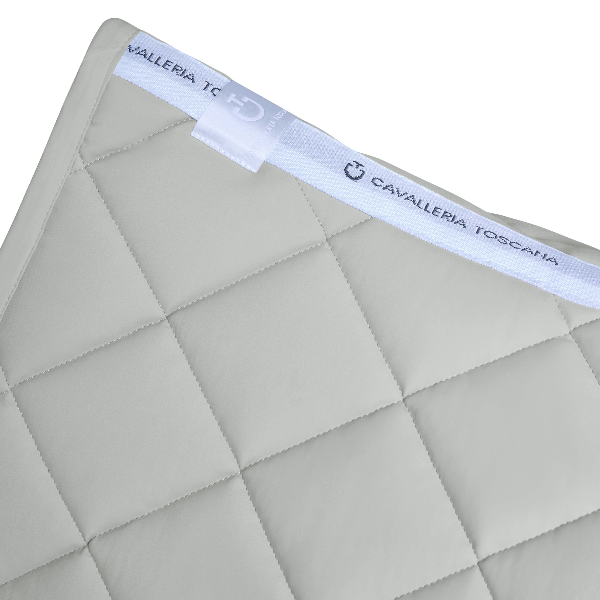 The Diamond Quilted Jersey Dressage Saddle Pad comes in a perfect colder light green color and features a white CT logo and a white channel along the back with the Cavalleria Toscana logo as well.