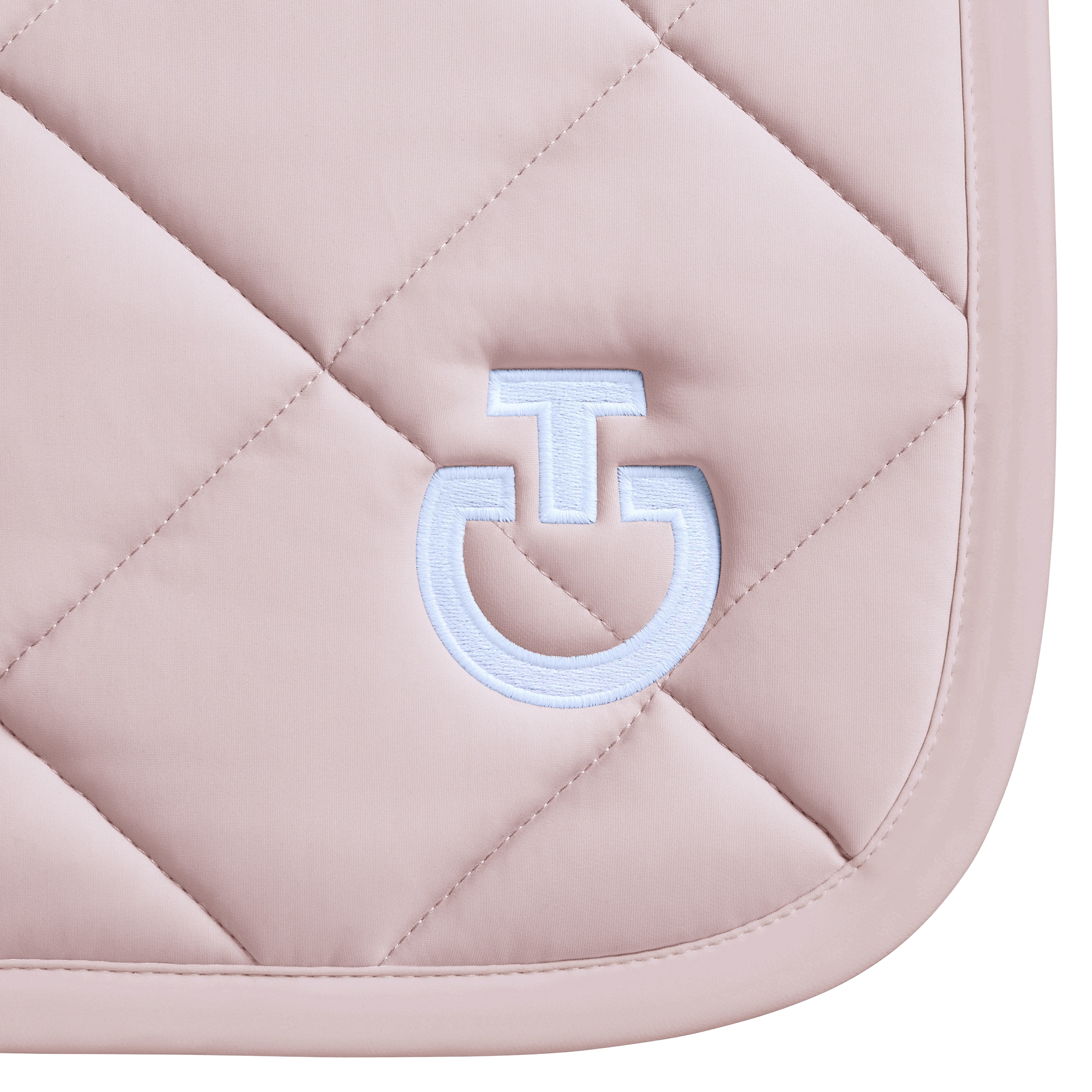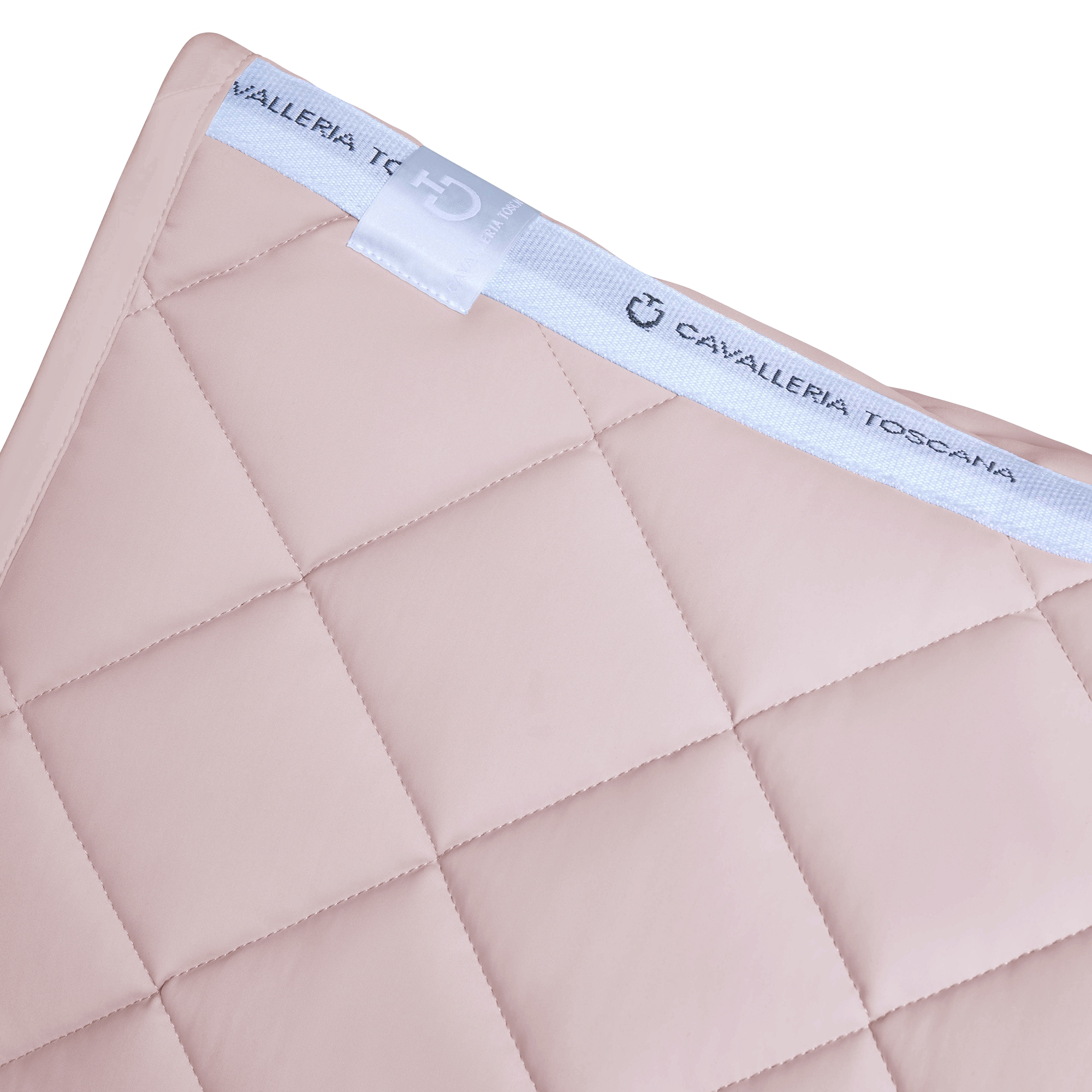 The Diamond Quilted Jersey Dressage Saddle Pad comes in a perfect light pink color and features a white CT logo and a white channel along the back with the Cavalleria Toscana logo as well.