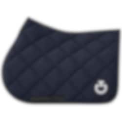 The Diamond Quilted Jersey Jumping Saddle Pad comes in a beautiful dark navy color and features a white CT logo and a black channel along the back with the Cavalleria Toscana logo as well.