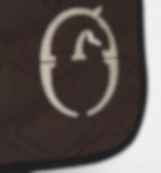 This saddle pad is brown with black edge and beige logotype. Perfect when you and your horse want to look extra good!