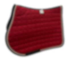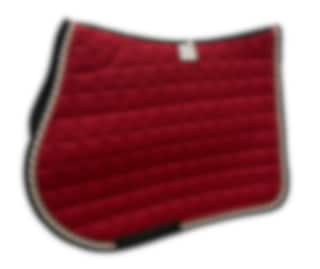 The jumping saddle pad is made of cotton with soft teddy at the withers to prevent chafing. This saddle pad has a nice dark red colour with a black edging, the passpoal is in black, white and gold.