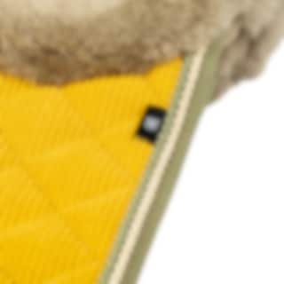 The sheepskin saddle pad comes in curry with schlamm sheepskin and two beautiful piping details along the edges.
