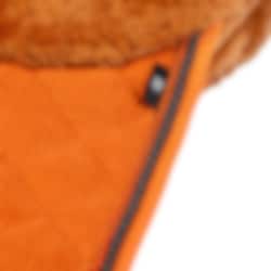 The sheepskin saddle pad comes in nougat with whiskey sheepskin and two beautiful piping details along the edges.