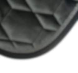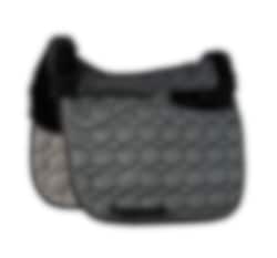 The sheepskin saddle pad comes in graphite with black sheepskin and two beautiful piping details along the edges.