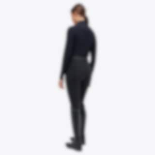 The CT Jersery Fleece Polo is the perfect choice for training on colder days. This black riding shirt comes with a soft fleece exterior that ensures warmth and comfort. The neckline and upper part of the front and back of the shirt are made of strong and durable polyamide. The jersey's shiny black zip creates a trendy contrast, and the CT logo on the right arm in glittery material adds a touch of elegance.