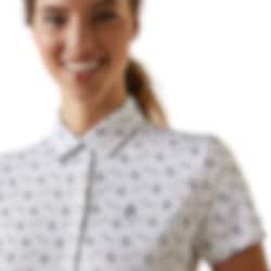 This riding polo is made in a supersoft and wonderful material with short sleeve. The riding polo has several buttons at the collar and an Ariat logo on the chest. The riding shirt is in a white colour with bit and stirrup print all over the riding shirt.