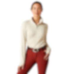 Prophecy is a stretchy and good looking riding shirt in a functional material from Ariat. This riding shirt has a nice sand beige colour with patterns of bits which makes this shirt unique. Prophecy functional shirt has 1/4 zipper on the front with a high collar. The Ariat-logo is labeled on the chest in matching silver with the zip.