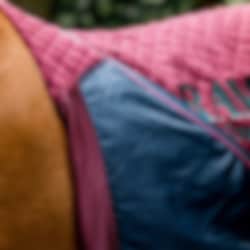 For a secure fit, the rug fastens at the front with a sleek leather buckle and is secured with two cross surcingles under the belly. An extra-wide tail flap protects the tail from rubbing and adds extra comfort during travel.