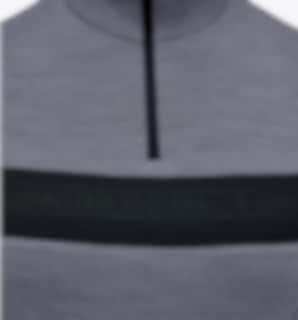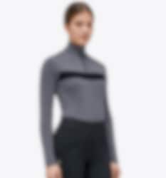 Tech wool training polo from Cavalleria Toscana has 1/4 zip with a collar. This riding shirt is in a super lovely grey color with black details and is really comfortable to wear. Tech Wool training polo has nice details, across the chest is a black band with Cavalleria Toscana written. The Tech Wool training polo shirt also has a 1/4 zip at the front and a small band at the back of the neck with the CT logo.