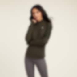 This functional sweater from Ariat is very strechy and comfortable, it keeps you warm and dry during the day. The riding sweater has nice details, sewn stripes on the back and on the sleeves. You will find the Ariat logo on the front and on the back of the riding jersey. Facet fleece from Ariat also has a very smart detail on the cuffs, a hole which enables you to keep track of the time on your watch.