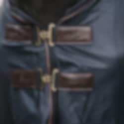The material of this mesh rug is very breathable and strong, so that the horse still will be able to enjoy a breeze of fresh air. The sheet is anatomically shaped for best fit and to prevent the rug from moving during the day. On top of that there are removable suringles and artificial sheepskin at the withers.