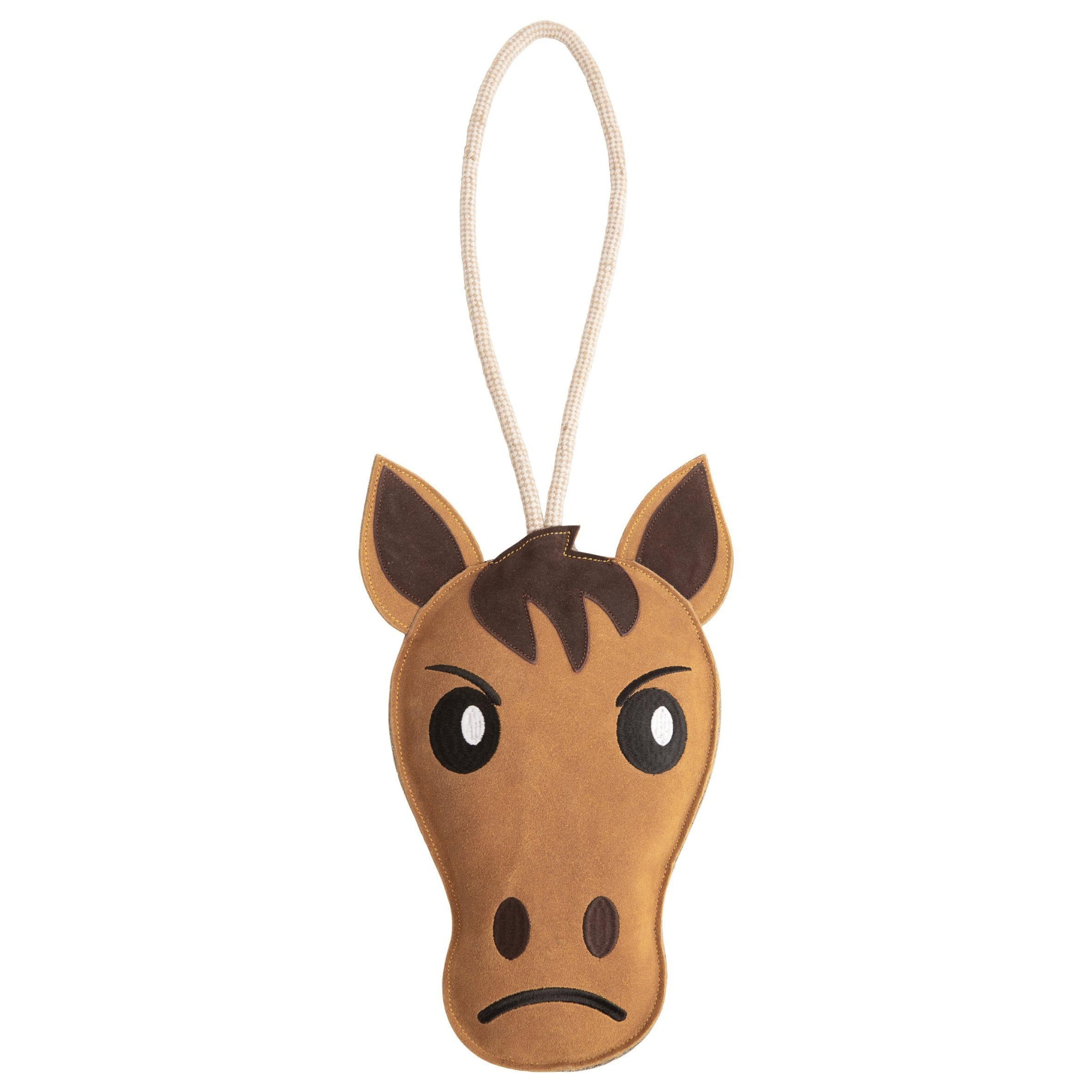 This horse toy is particularly suitable for horses that easily become restless in the stable. By encouraging behaviours such as sniffing, pulling, chewing and exploring, the toy activates the horse both physically and mentally, which may help reduce boredom and stress during time spent in the stable. Thanks to the strong rope, the Equimoji is easy to hang in the stable, along the stable aisle or in the paddock.