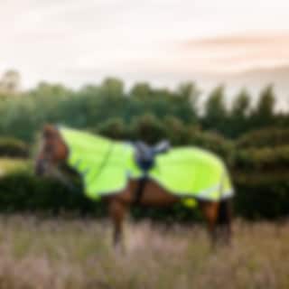 Flugridtäcke som skyddar hästen mot insekter och flugor under ridturen.