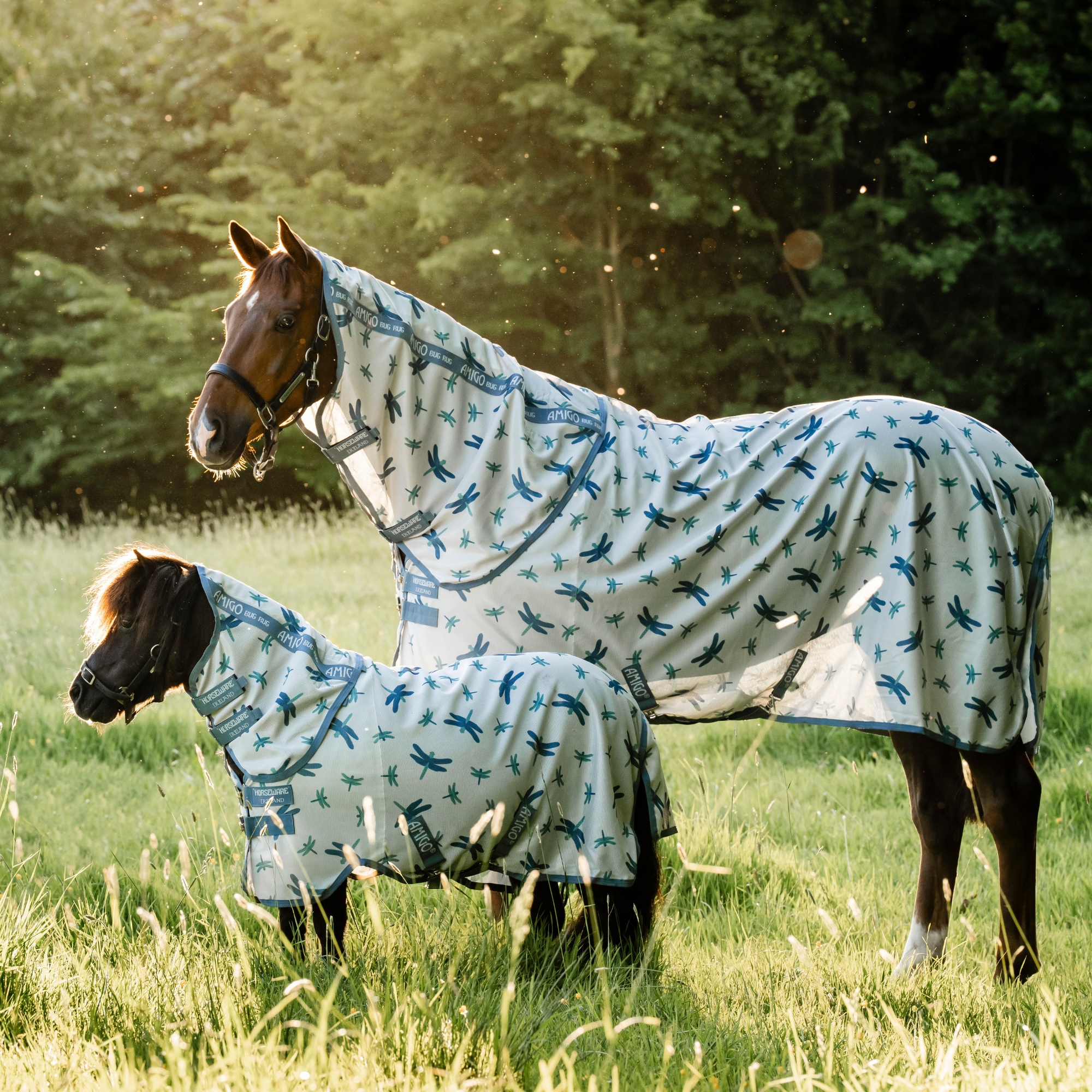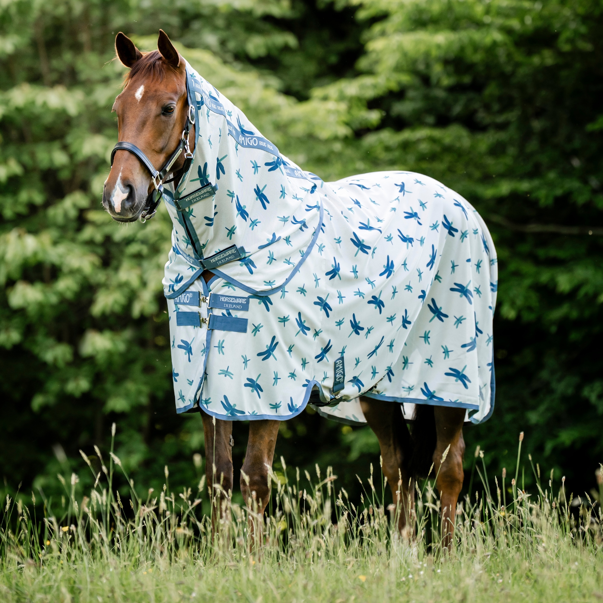 Amigo Bug Rug Plus med avtagbar hals från Horseware i färgen Dragonfly Print/Silver.