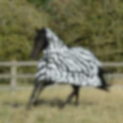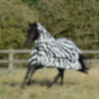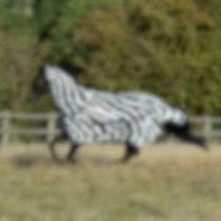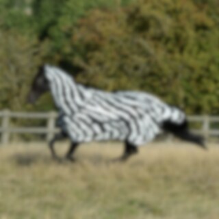 Bucas Buzz-Off Flugtäcke är tillverkat av en specialutvecklad, ultralätt och finmaskig mesh som effektivt blockerar även de minsta insekterna, samtidigt som det ger optimal ventilation. Det unika zebramönstret gör täcket extra effektivt. Forskning visar att flugor blir förvirrade av ränderna och därför undviker att landa på hästen.