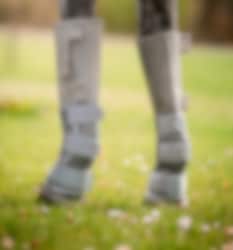 - Hybridskydd: kombinerar tyger för att erbjuda avancerat flugskydd för hästens ben