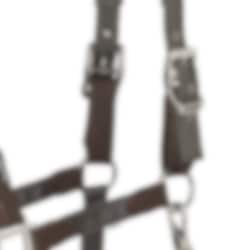 Över nacken och nosen är grimman mjukt fodrad med fleece för bästa komfort. Läderdetaljerna vid ringarna är inte bara snygga utan även en säkerhetsåtgärd då dessa ska gå sönder om hästen fastnar. Nackstycket har även kardborreknäppning på båda sidor.