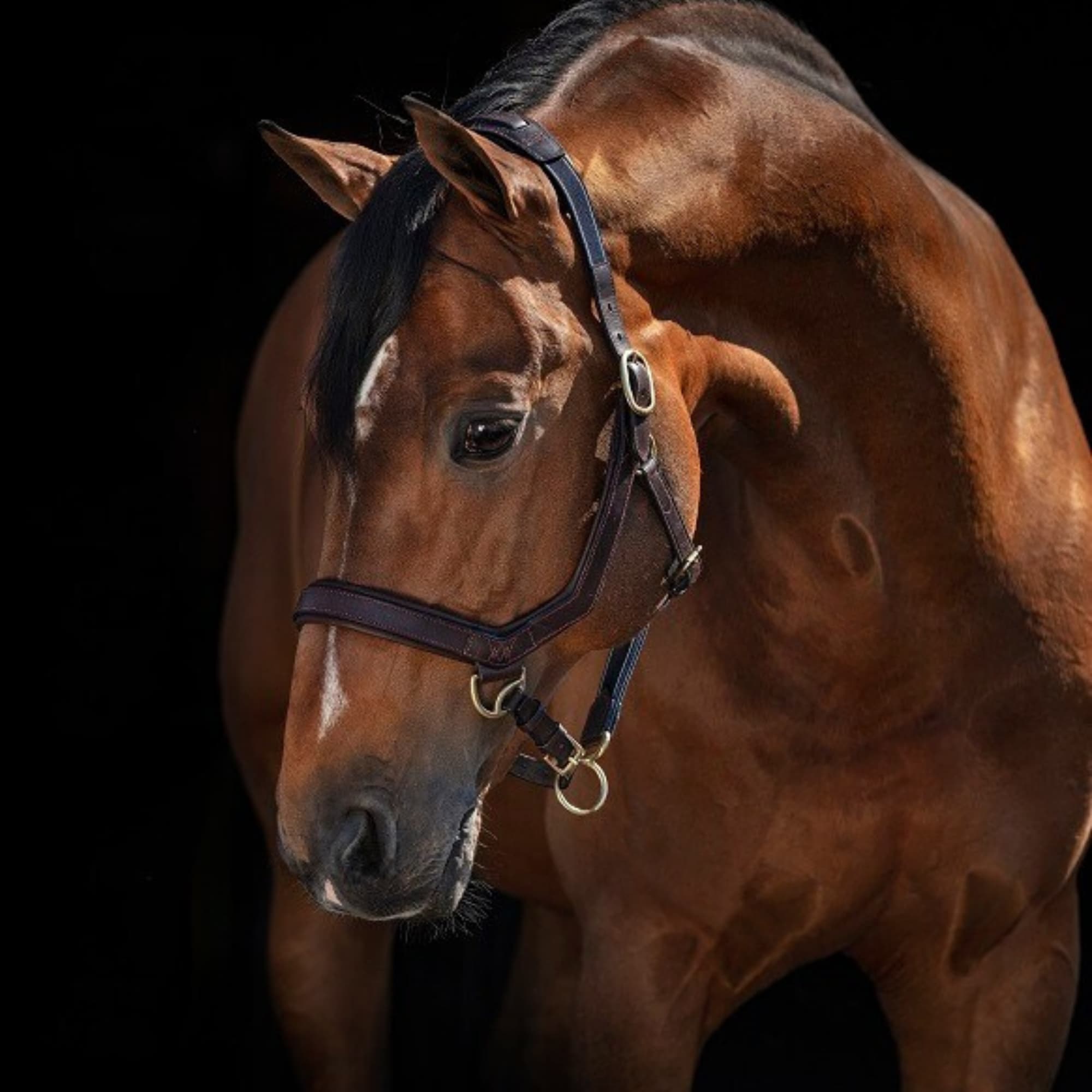 Grimman är justerbar på båda sidor samt under hakan med eleganta mässingsspännen, vilket gör det enkelt att anpassa passformen exakt efter hästen. Den stabila konstruktionen och den smarta formen minskar risken för att grimman vrider sig, ger bättre kontroll vid ledning och hjälper till att skydda hästens ögon.