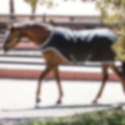 Detta promenadtäcke är utformat för att ge maximal bogfrihet och minska trycket över skuldrorna, vilket gör det extra bekvämt även under rörelse. Bogspännet håller täcket säkert på plats utan att begränsa hästens naturliga rörelsemönster.