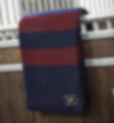 Helt underbar ullfilt från Lippo! Denna ullfilt är av 100% ull i en härligt marinblå färg med mörkt vinröda ränder. 180x210 cm