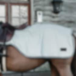 Kentuckys Riding Rug Reflective fästes enkelt framför sadeln med kardborre och har en svansrem som håller täcket på plats även under ridning.