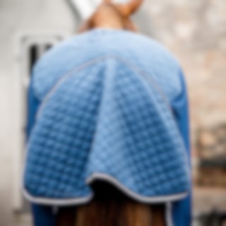 För en säker passform stängs täcket framtill med ett stilrent läderspänne och fästs med två kryssgjordar under magen. En extra bred svansflärp skyddar svansen från skav och ger extra komfort under resan.