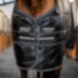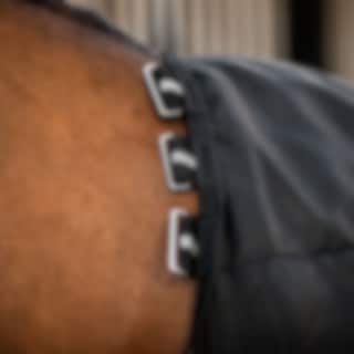 Yttertyget är tillverkat av slitstark 210D polyester med diamantmönstrad ripstop-väv, vilket ger extra hållbarhet och motståndskraft mot slitage. Täcket är fodrat med 100 gram fiberfyllning som inte bara håller din häst varm utan också erbjuder god andningsförmåga, glansig polyesterlining upprätthåller god pälskvalitet.