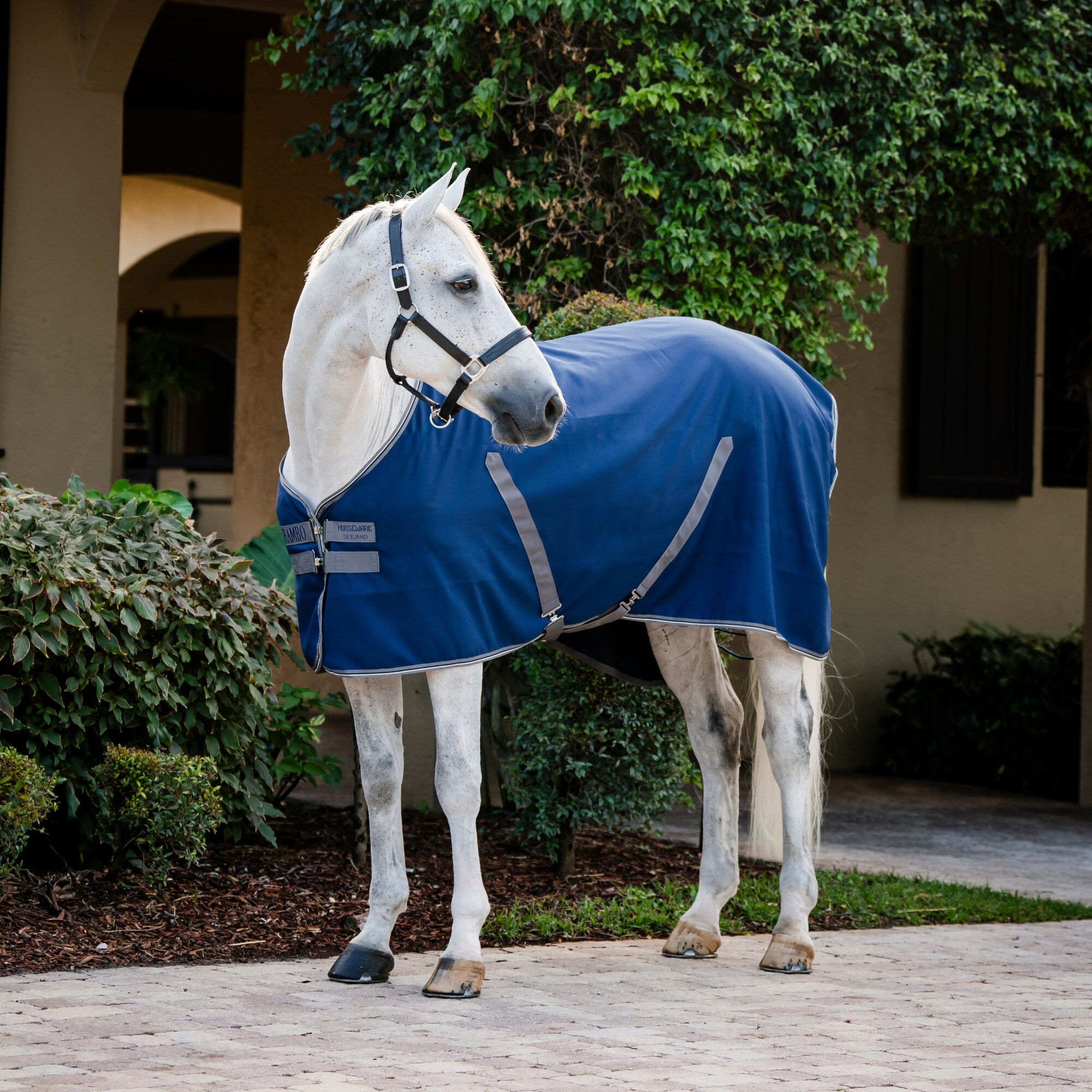 Den klassiska passformen med rak frontknäppning, justerbara kryssgjordar och svansrem ger en säker och stabil passform, idealisk för användning i stallet, i transporten eller efter träning.