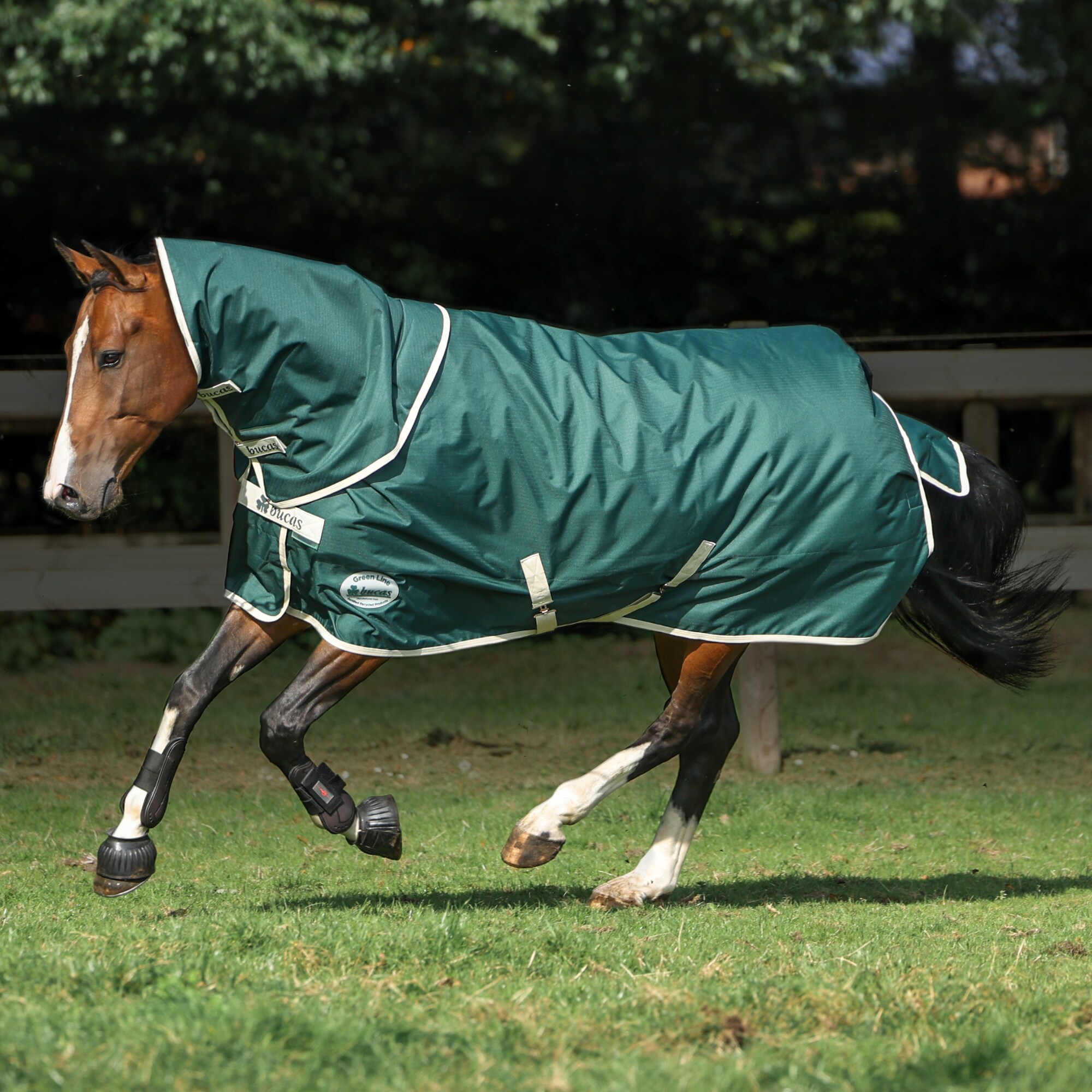 Green-Line Combi Neck är en del av Bucas nya Eko-vänliga serie som kombinerar Bucas goda kvalitet och design på sina hästtäcken med användningen av återvunnet material.