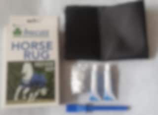 Detta repair kit fungerar till både stalltäcke och utetäcken, för även ett kvalitetstäcke kan utsättas för tillräcklig åverkan så att det behöver lagas.