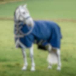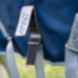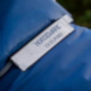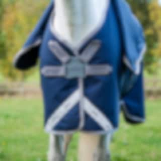 Täcket är utrustat med komforthöjande detaljer som avtagbar hals, disc-front knäppning och benbågar för ökad rörlighet samt vattentät svanslapp och svansrem i PVC.